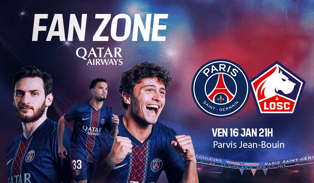 Ce vendredi à l’occasion de ce match face à Lille au Parc des Princes, le Paris Saint-Germain convie tous ses supporters présents au Parc des Princes à découvrir la Fan Zone by Qatar Airways qui ouvrira à partir de 18h située sur le parvis du Stade Jean-Bouin.