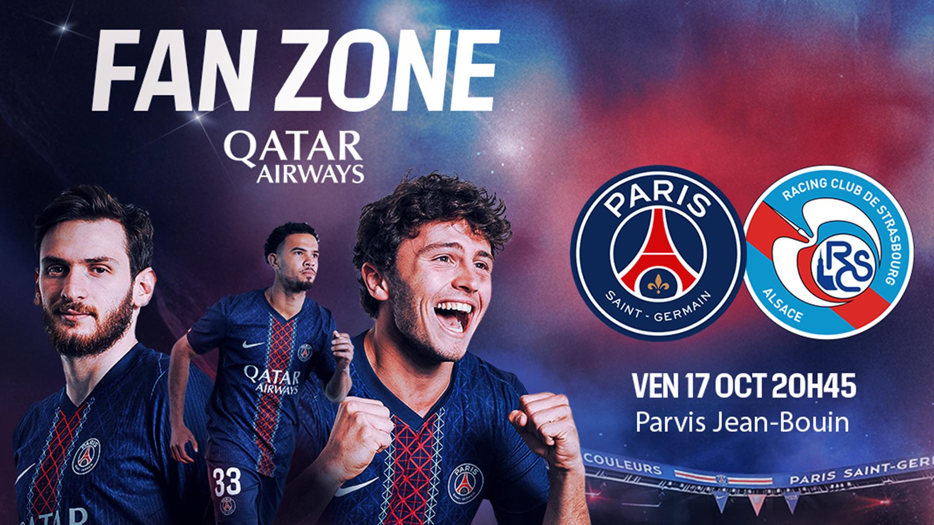 Ce vendredi 17 octobre 2025 à l’occasion de la réception du Racing Club de Strasbourg Alsace comptant pour la 8e journée de Ligue 1, le Paris Saint-Germain convie tous ses supporters présents au Parc des Princes à découvrir la Fan Zone by Qatar Airways qui ouvrira à partir de 17h45 située sur le parvis du Stade Jean-Bouin.
