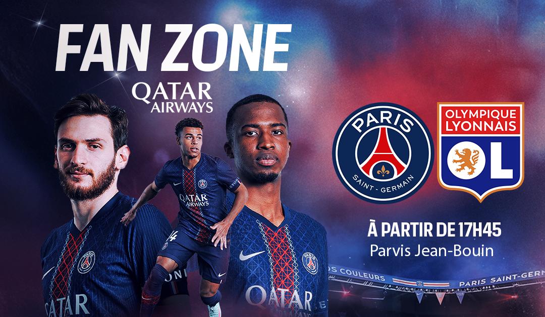 Le Paris Saint-Germain convie tous ses supporters présents au Parc des Princes à découvrir la Fan Zone by Qatar Airways qui ouvrira à partir de 17h45 située sur le parvis du stade Jean-Bouin.