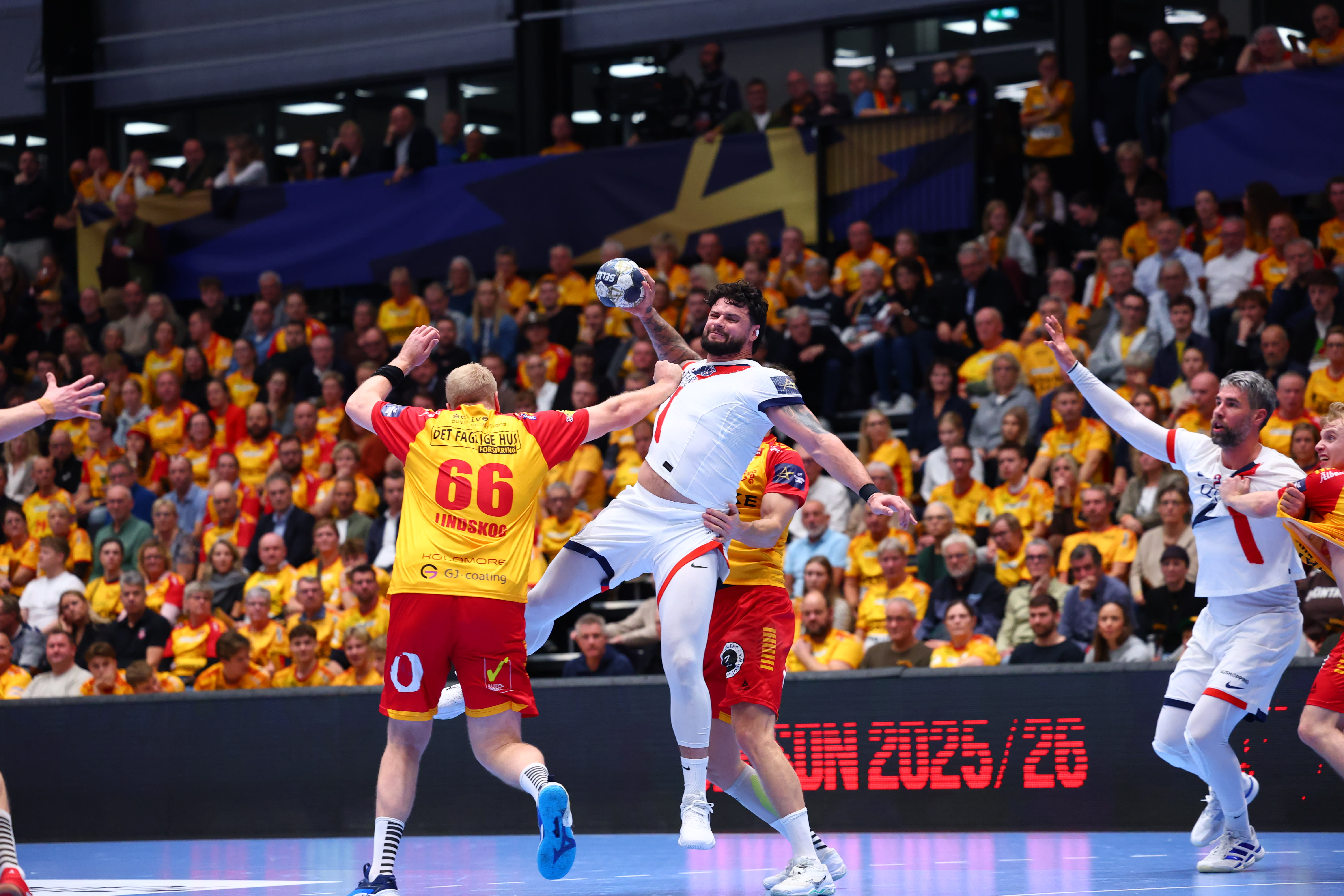 Déjà auteur de neuf réalisations lors du premier face-à-face entre les deux formations à Coubertin avant la trêve, Elohim Prandi a poursuivi son excellente dynamique face aux Scandinaves. Mercredi, notre arrière gauche a converti l'ensemble de ses tentatives, trouvant le chemin des filets à huit reprises et délivrant trois passes décisives. Un total qui lui permet de s'immiscer provisoirement à la troisième place du classement des buteurs de l'EHF Champions League cette saison, avec 55 réalisations, soit deux de moins que son rival du soir Frederik Bjerre, en tête devant Mathias Gidsel (56 buts).