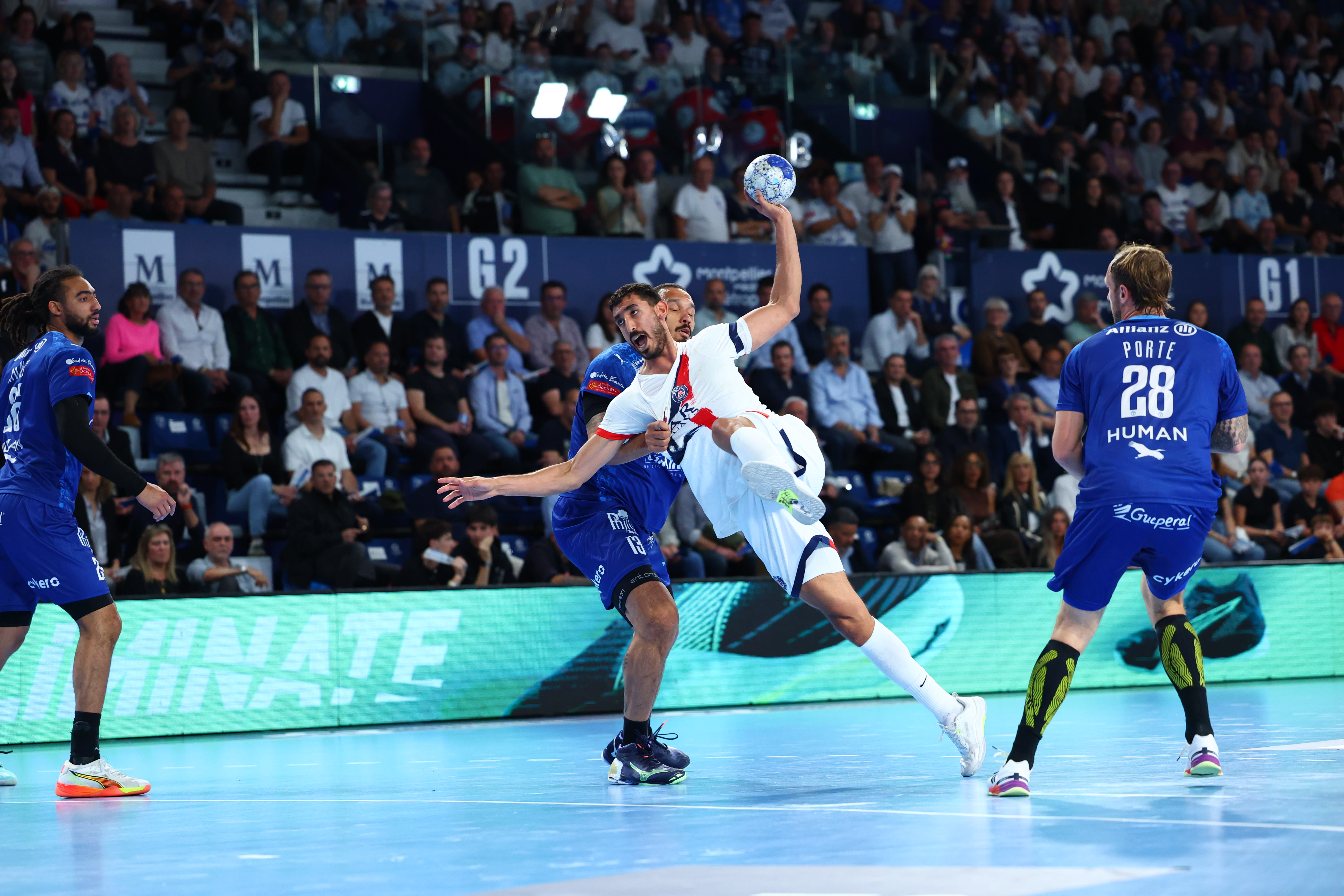 Grâce à un jet de 7 mètres parfaitement transformé par Kamil Syprzak, Paris parvient à faire le premier break du match quelques instants plus tard, forçant Érick Mathé à poser son premier temps mort (15e : 7-9). Les Héraultais se relancent, mais le réveil brutal de Yahia Omar, auteur de deux buts coup sur coup, calme leurs ardeurs, dans un premier acte toujours aussi plaisant et rythmé.